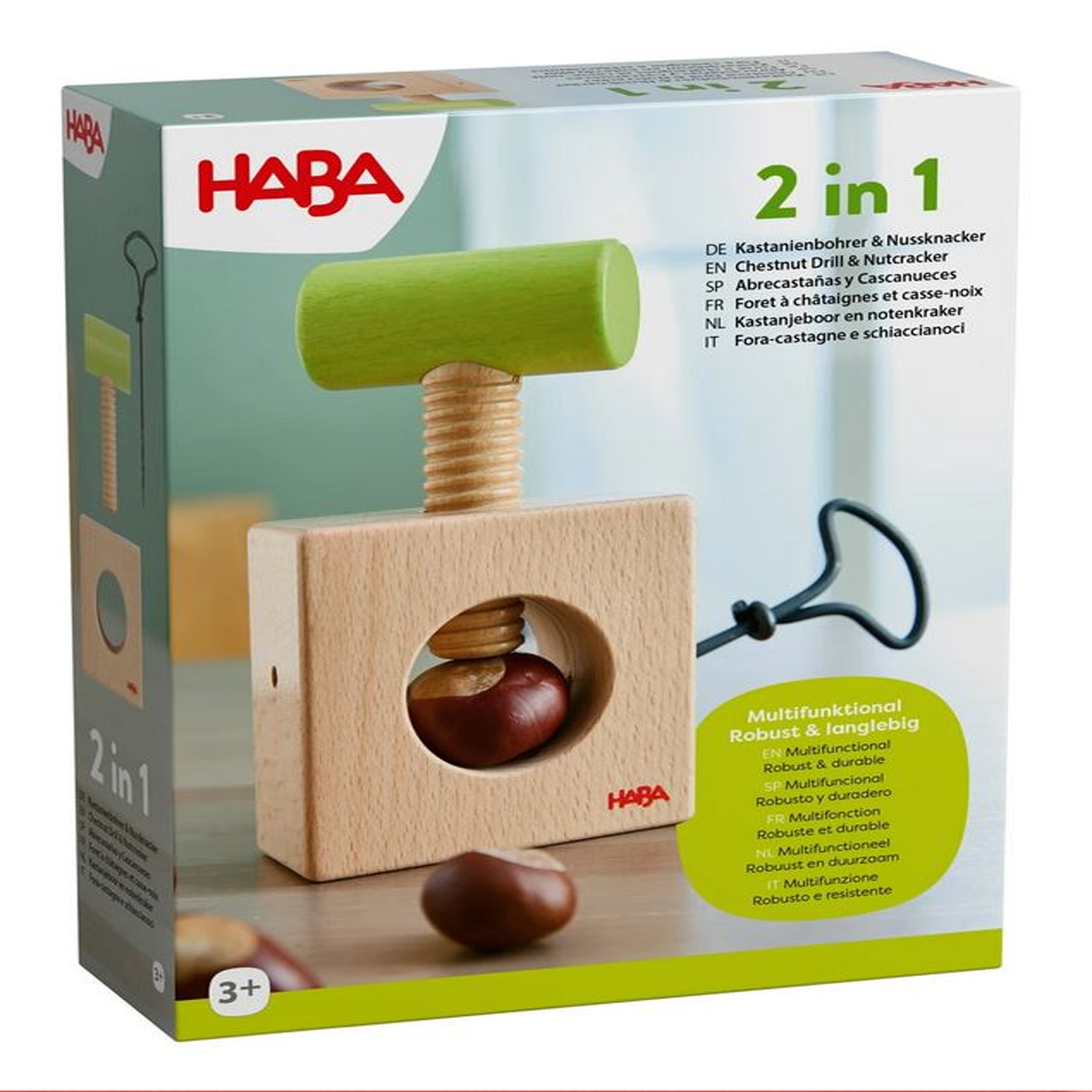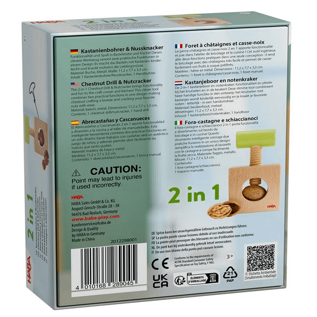 Este práctico cascanueces y abrecastañas 2 en 1 de la marca HABA está diseñado para que los niños desarrollen su motricidad fina y la coordinación ojo-mano mientras se divierten.