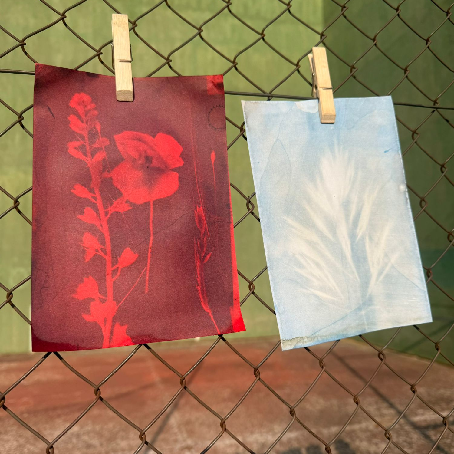 Solo tienes que poner las flores, siluetas de papel y otras cosas que quieras hacer tú mismo en el papel con la tinta, presionarlas con vidrio transparente o placa acrílica, mantenlas bajo el sol durante 15 minutos, enjuaga el papel debajo del grifo o vierte agua en una bandeja durante aproximadamente 1 minuto y deja que se seque; después del secado, tu trabajo se puede presentar muy bien.