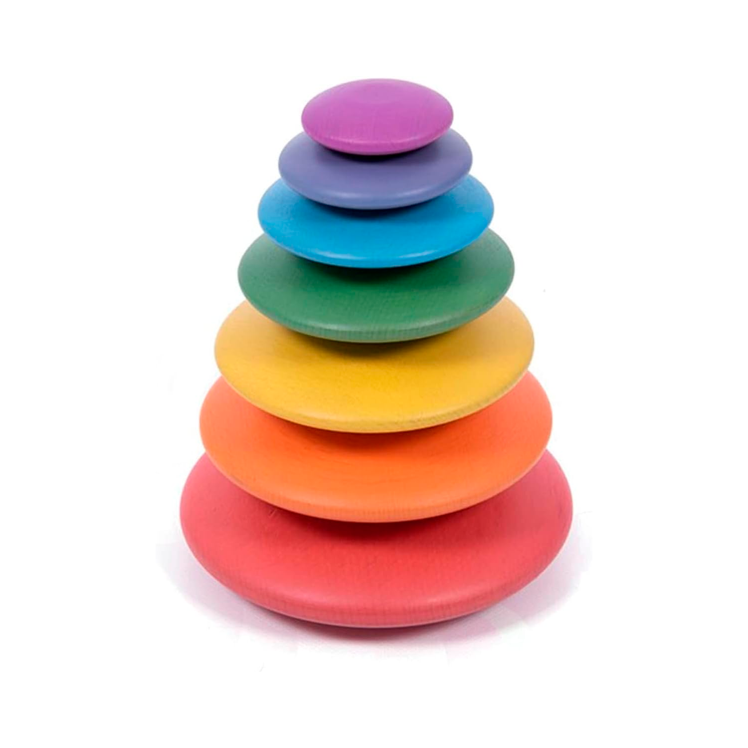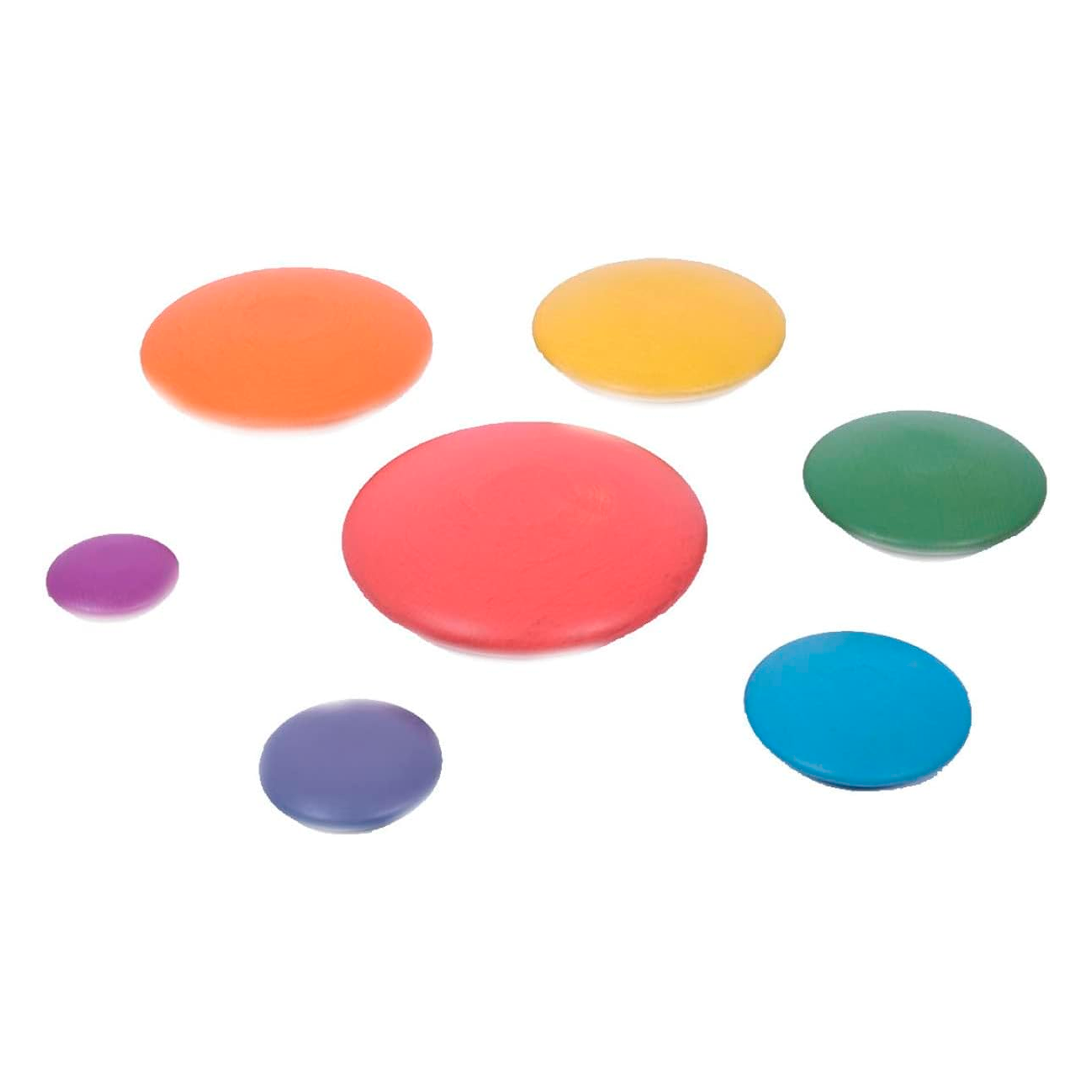 Set de 7 botones de madera maciza en los colores del arcoíris, ideal como juguete sensorial y de construcción para los niños más pequeños. La medida y el peso son ideales para manipularlas con facilidad y el tacto es inigualable, con superficies ligeramente planas para equilibrar y apilar.