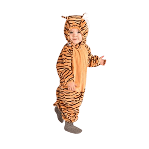Haz que tu pequeño rugido se escuche con este adorable disfraz de tigre. Diseñado para brindar máxima comodidad y libertad de movimiento, está confeccionado con 100% poliéster y cuenta con una cremallera frontal para ponerlo y quitarlo fácilmente. Su tejido elástico en mangas y piernas garantiza un ajuste perfecto, mientras que la capucha con orejas cosidas y la cola trasera añaden un toque auténtico y encantador.