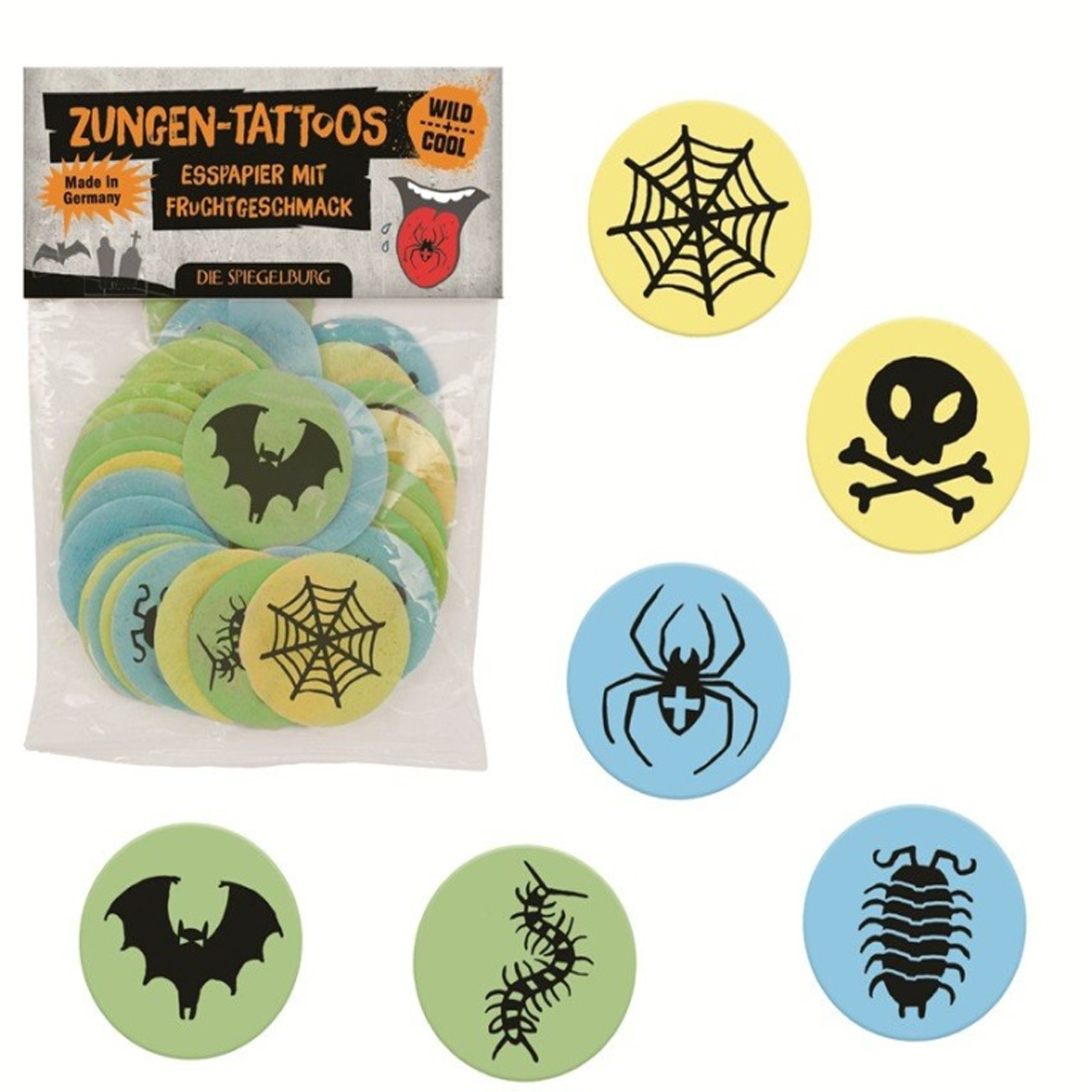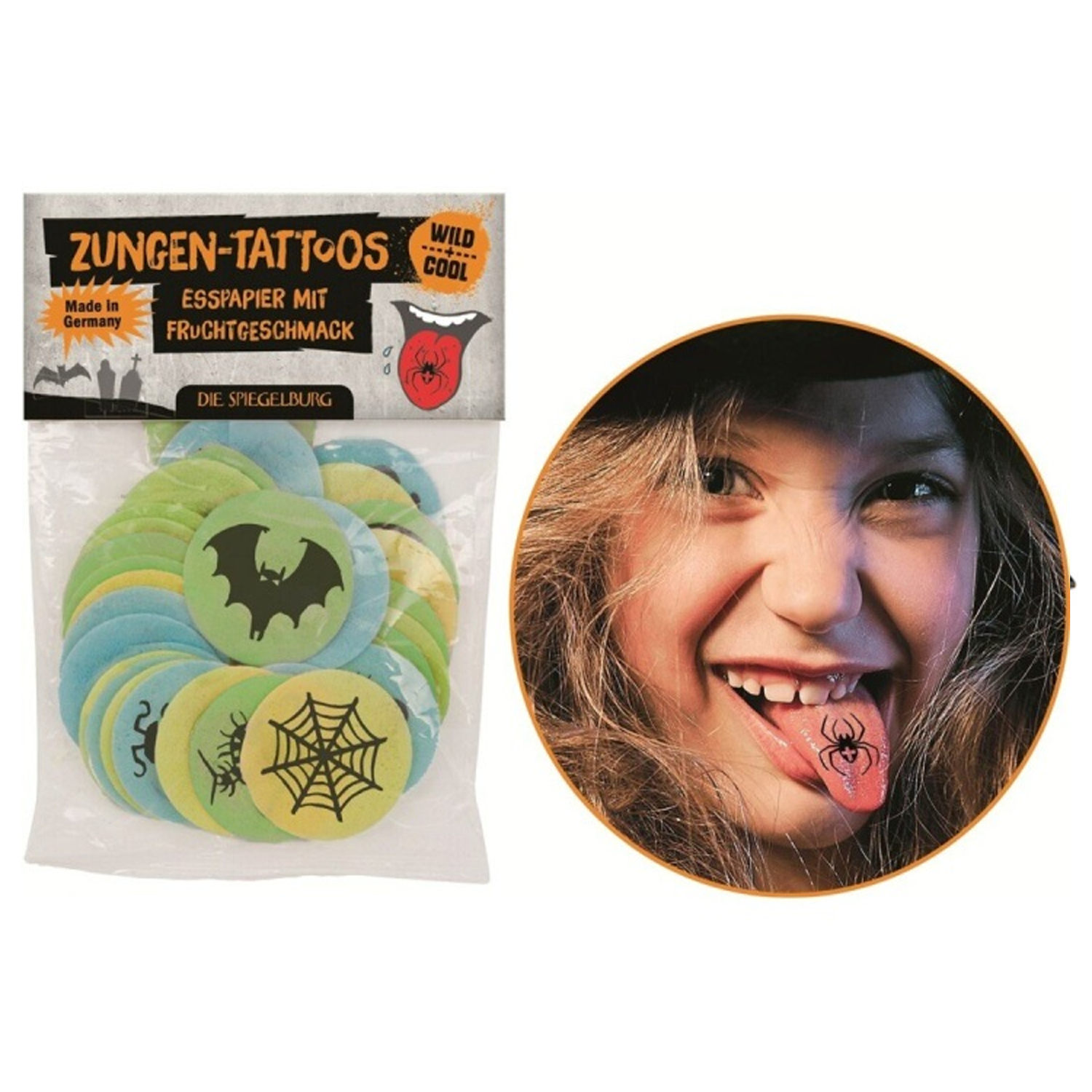 Los tatuajes de lengua de Die Spiegelburg proporcionan una experiencia loca: simplemente colóquelo en su lengua, presiónelo brevemente y aparecerá un tatuaje genial hecho de colorante alimentario.