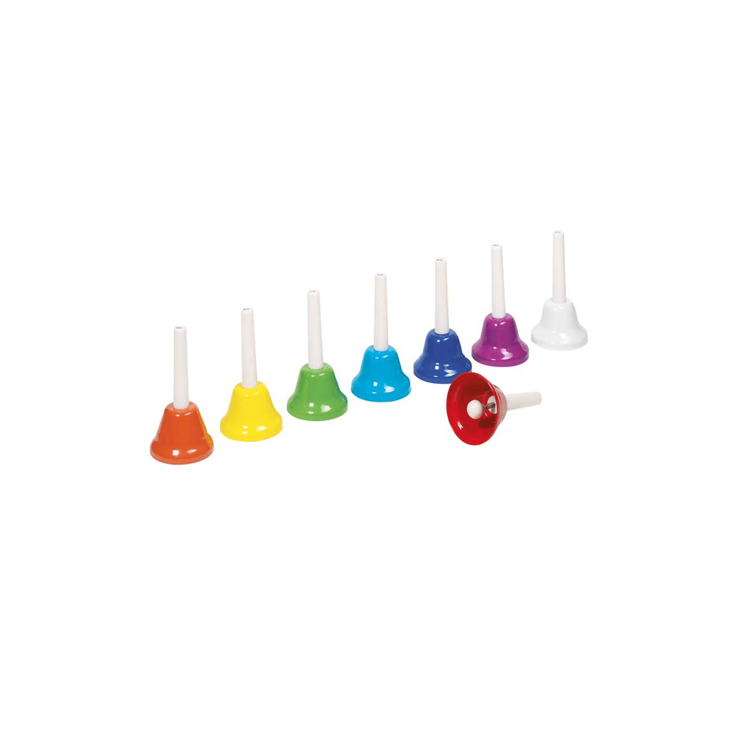 El set de campanillas afinadas. Incluye ocho campanillas diatónicas de colores, ideales para percusión infantil y entornos educativos, así como para agrupaciones musicales y percusión general. Fáciles de tocar y estupendas para aprender melodías sencillas, producen un sonido brillante y tintineante al agitarlas.
