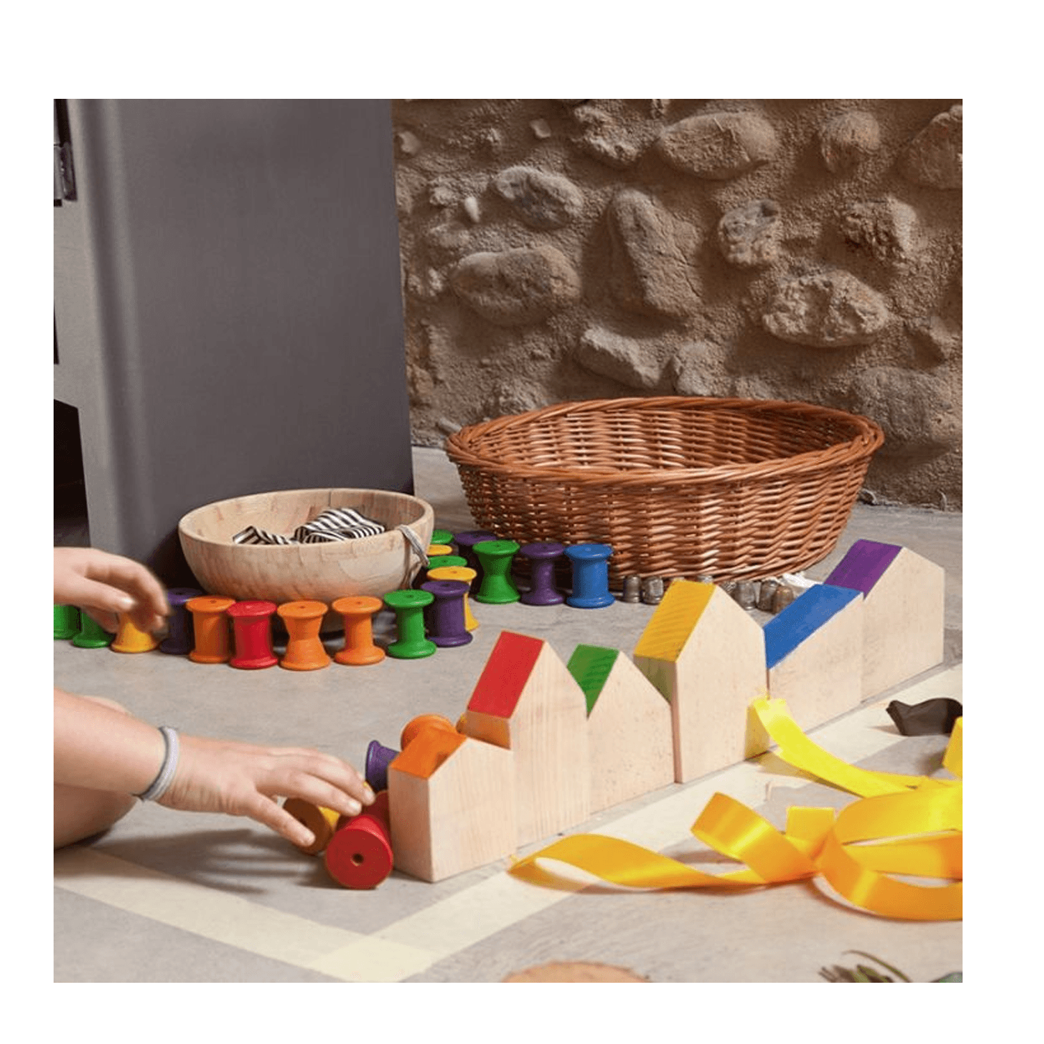 Las piezas Grapat favorecen el pensamiento creativo y divergente; son clásicas de la pedagogía Waldorf y fomentan horas de juego abierto e imaginativo.