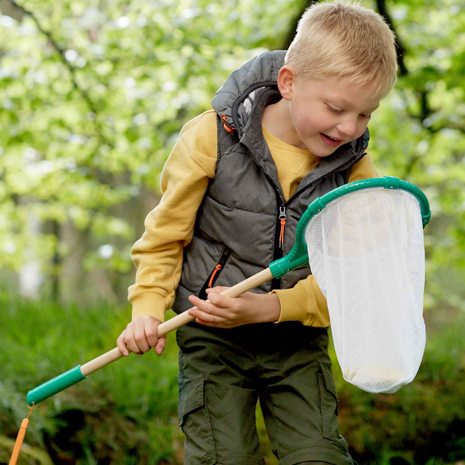 ¡Caza mariposas con esta divertida red para poder observarlas y estudiarlas! Hecha de bambú sostenible y con un anillo protector de plástico de origen vegetal (no derivado del petróleo), la red es ligera, lo que la hace perfecta para los pequeños exploradores.