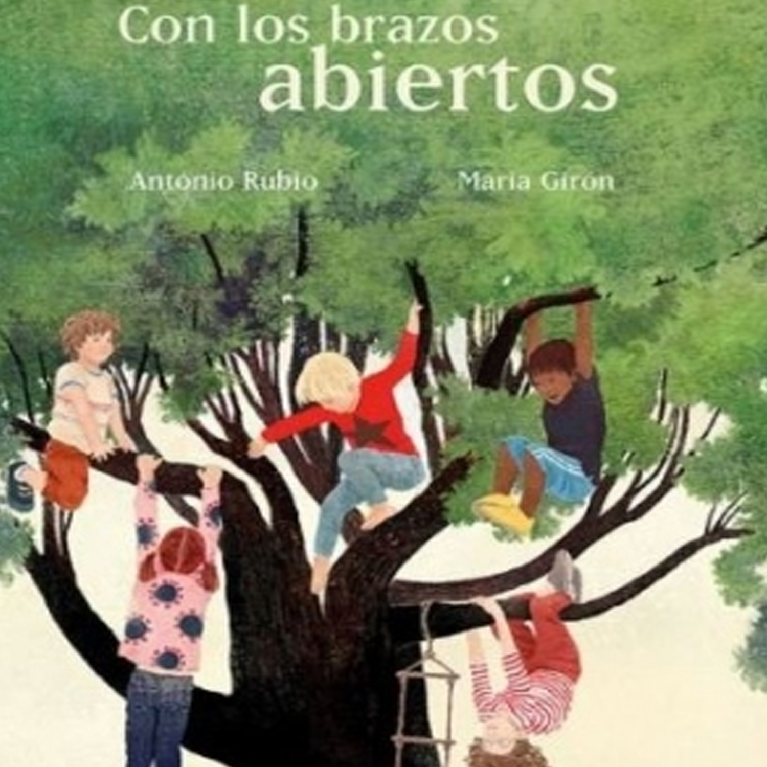«Con los brazos abiertos» presenta la diversidad a ojos de la infancia a partir de una jornada en el colegio, donde niñas y niños de distintas procedencias conviven felices y en armonía, aprendiendo y ayudándose mutuamente, compartiendo juegos, melodías, sabores, danzas… Esa diversidad se plasma en la fisonomía y la tez de los escolares, sus respectivas lenguas maternas o las costumbres propias de cada colectivo. Antonio Rubio abarca toda esa valiosa riqueza con versos que destacan por la belleza y la sutileza de las figuras literarias.