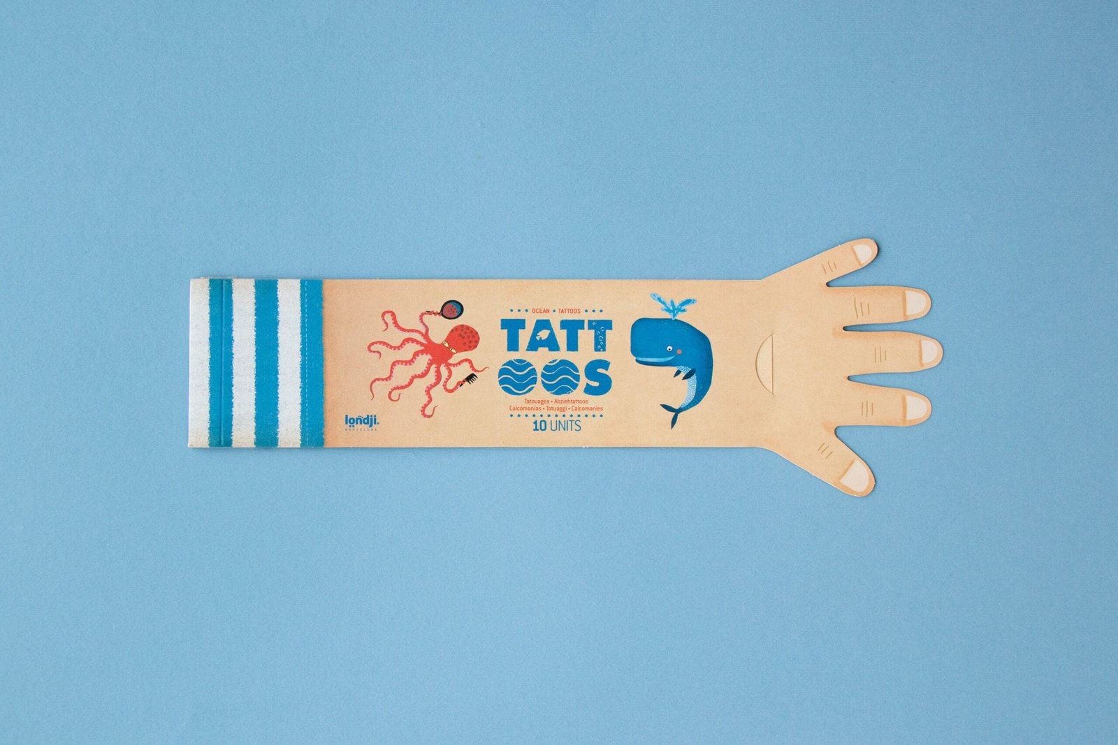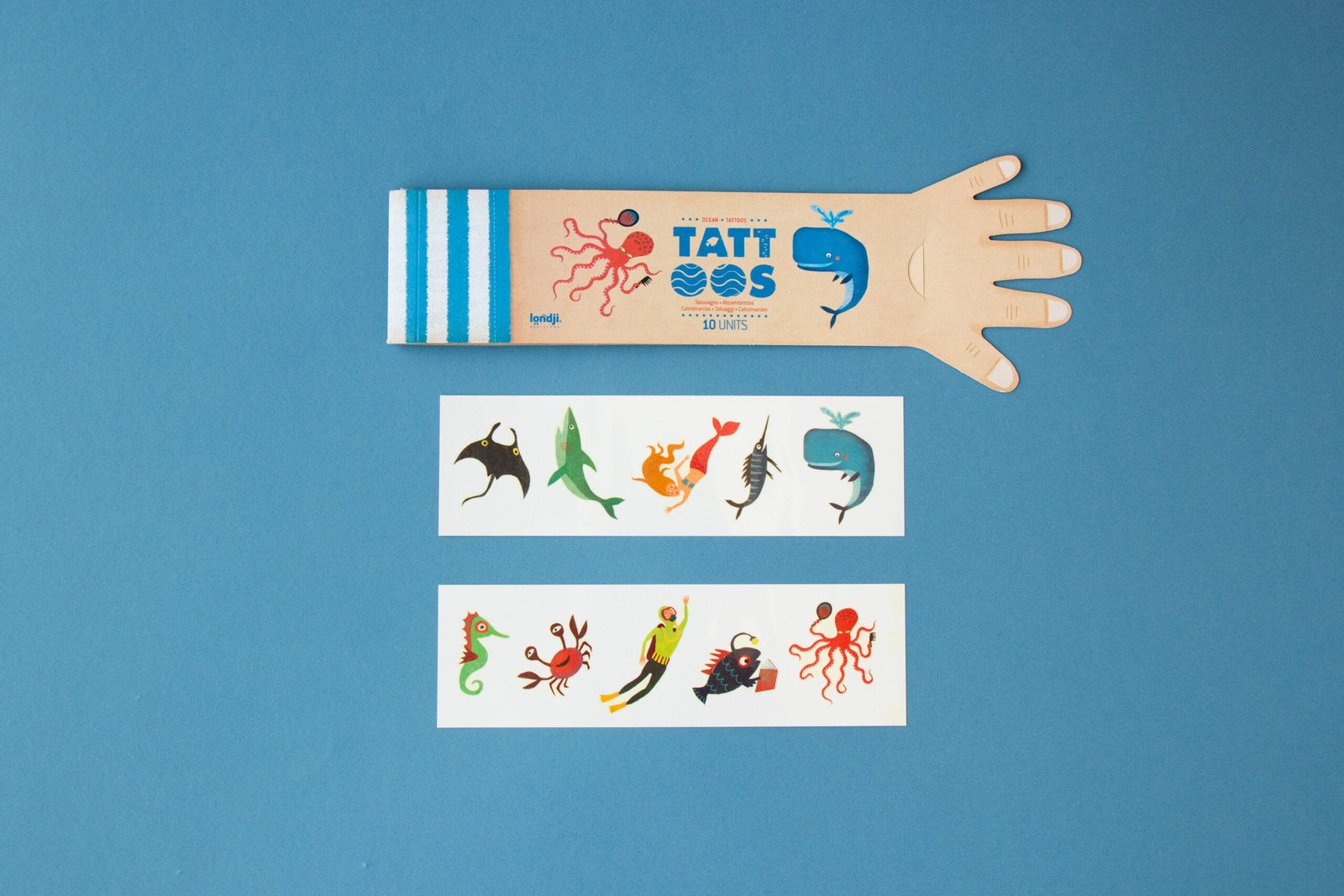 Criaturas marinas de todo tipo, ¡tenemos el placer de presentarte los tattoos de Londji más mágicas! Son seguros, no tóxicos y fabricados en Europa. Para que los más pequeños de la familia decoren su cuerpo con estos diez tatuajes temporales de criaturas marinas. Dermatológicamente probado.