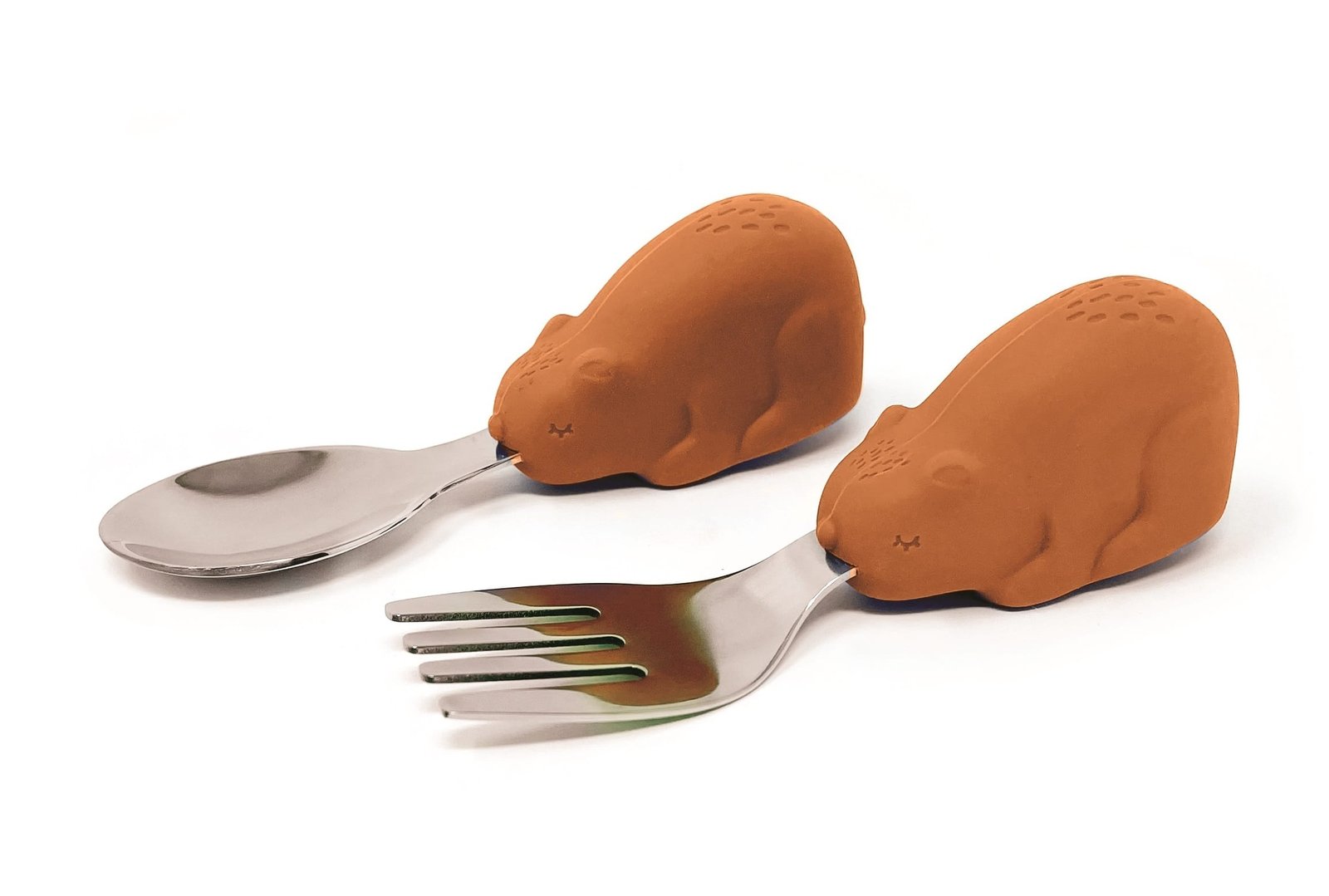 CUBIERTOS ACERO+SILICONA OSO NARANJA-TINY TWINKLE