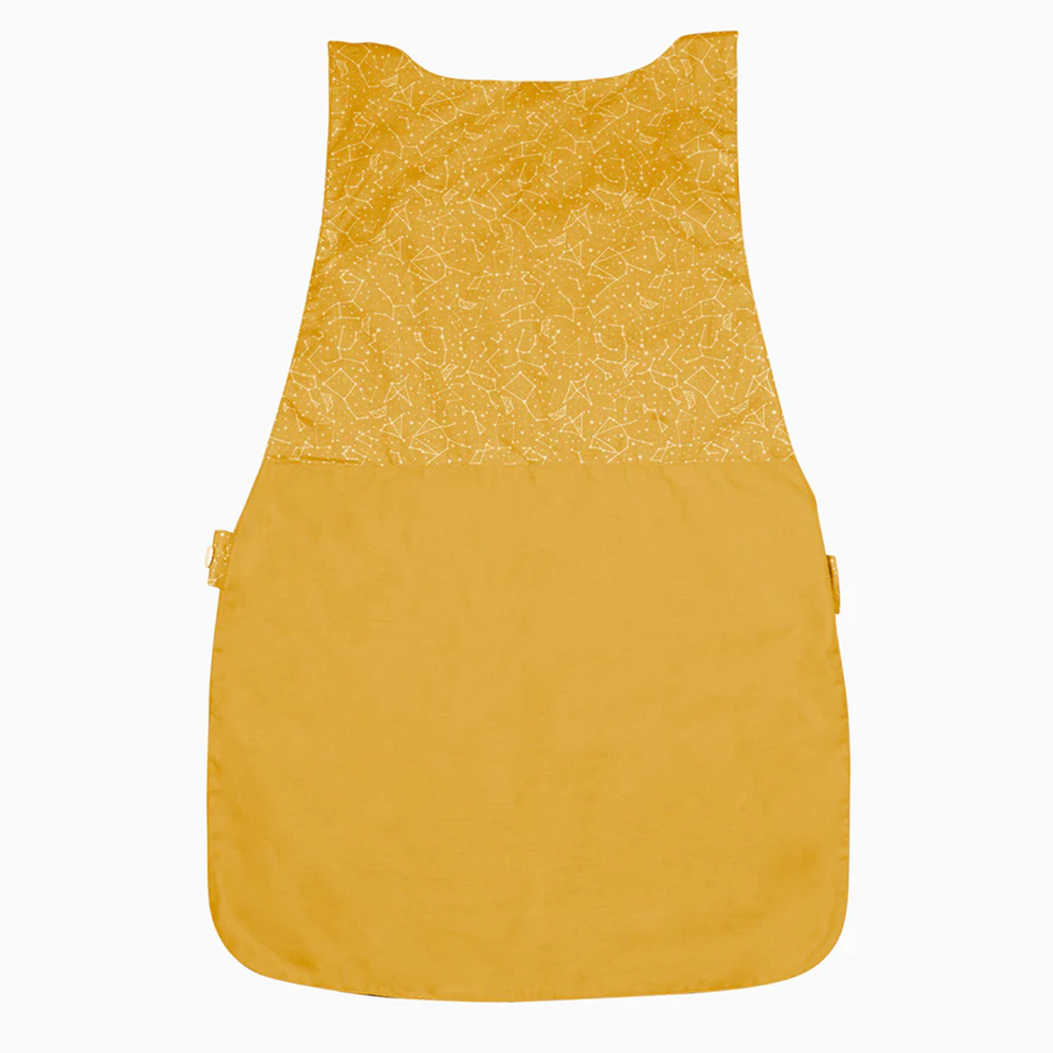 Bonita estola para adultos con nuestro clássico estampado de color mostaza. Tejido de algodón muy suave, agradable y fresco. Es de talla única y se ajusta mediante una tira de botones laterales. Tiene un bolsillo delantero.