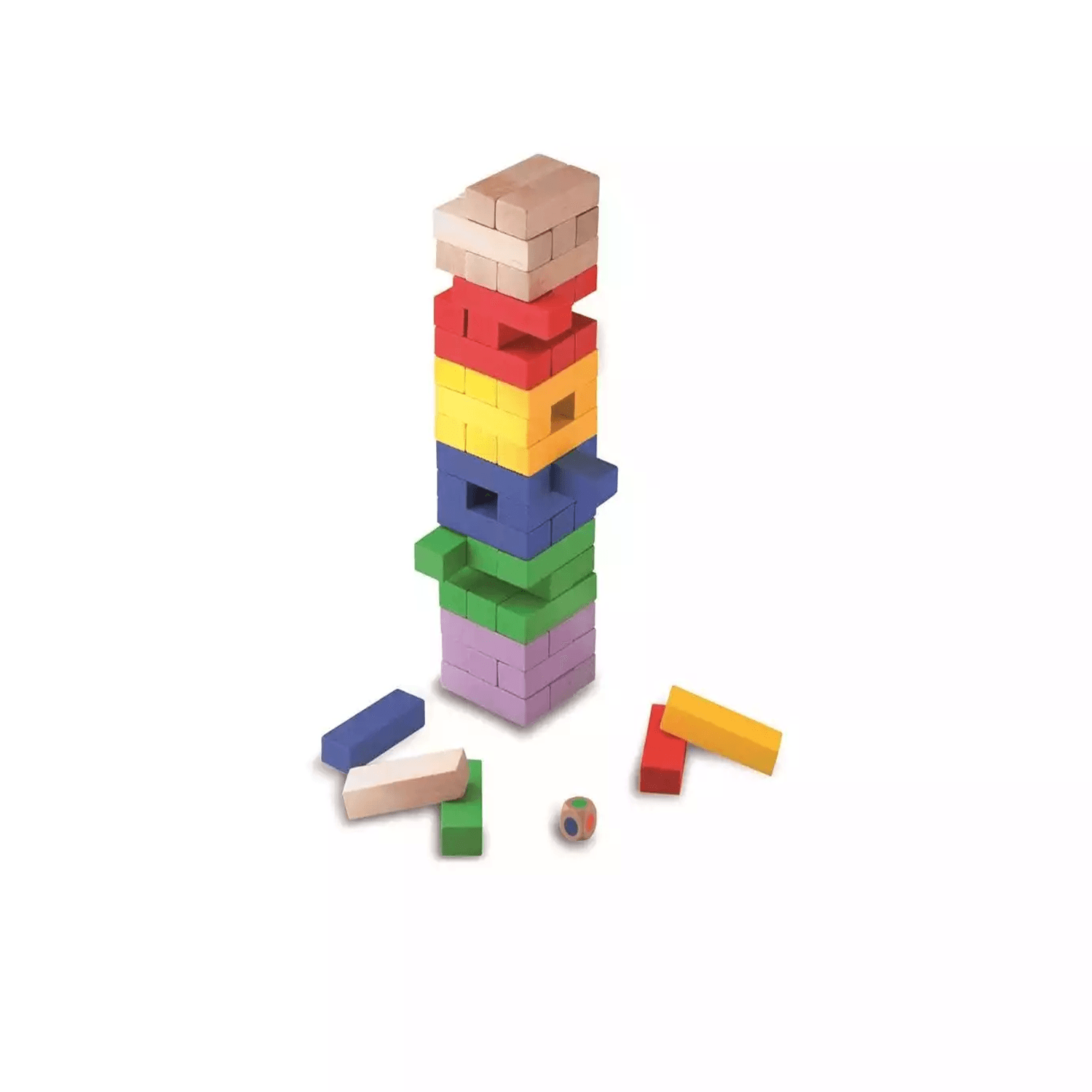 Juego de habilidad compuesto por 54 bloques de madera de colores que tendrás que ir retirando evitando que la torre se derrumbe. Habilidad, pulso firme, decisión, son las cualidades imprescindibles para ganar con este juego de madera natural.