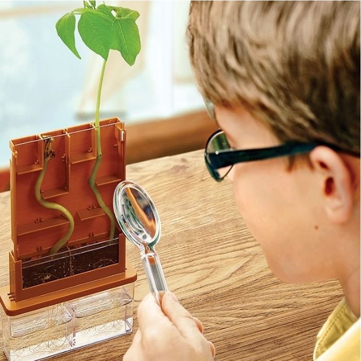 Es un paso más allà de lo que habíamos hecho todos y todas en nuestra infancia, que era germinar una judía en un algodón, con este kit podran comprender mucho más sobre cómo crecen las plantas y obsevar todo el proceso.