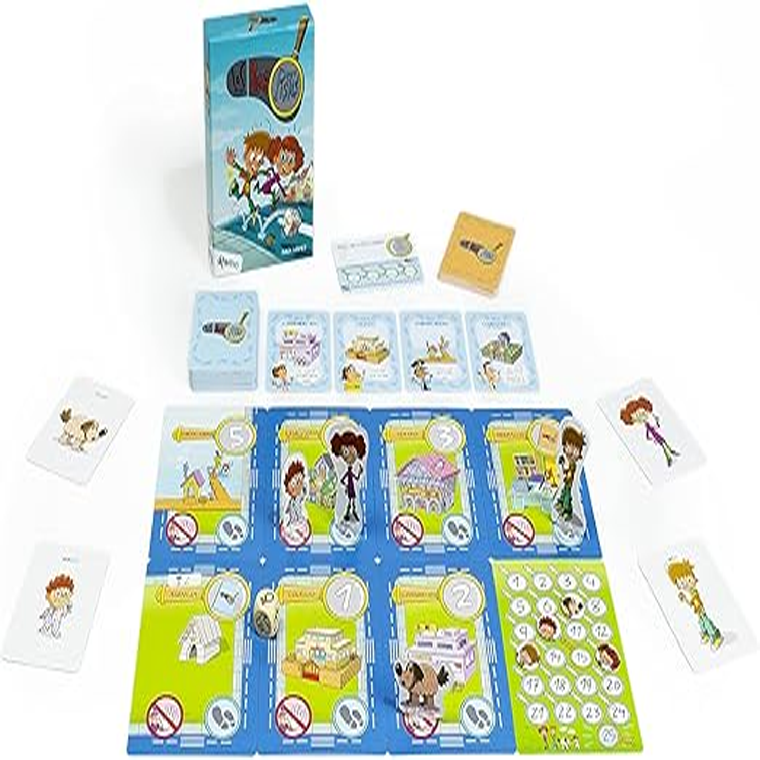 - La caja contiene 8 Cartas Grandes de Localización, 60 Cartas de pistas y Ayudas, un Dado de investigación personalizado, Fichas y peanas de personajes y Carnets del Buen Investigador personalizables. También incluye el libro de las reglas de juego en español. «