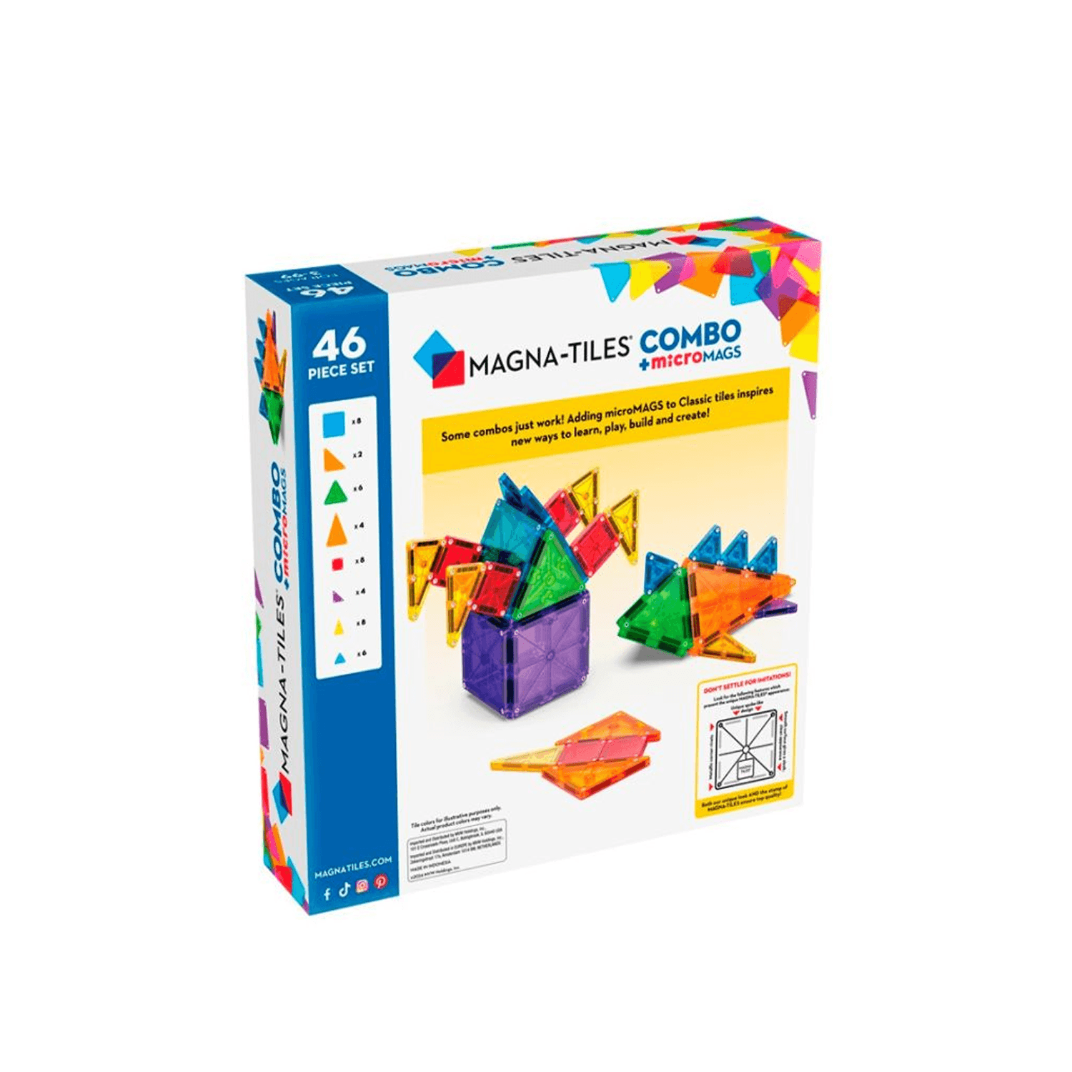 Set de construcción magnético con 20 piezas de tamaño estándar y 26 piezas pequeñas MicroMags, de Magna-Tiles.