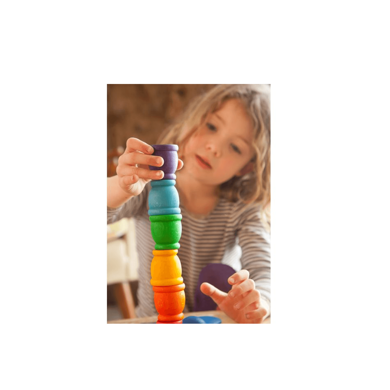 Conjunto de 6 cubiletes de madera de haya teñidos en los colores del arco iris, son de textura suave y lisa.