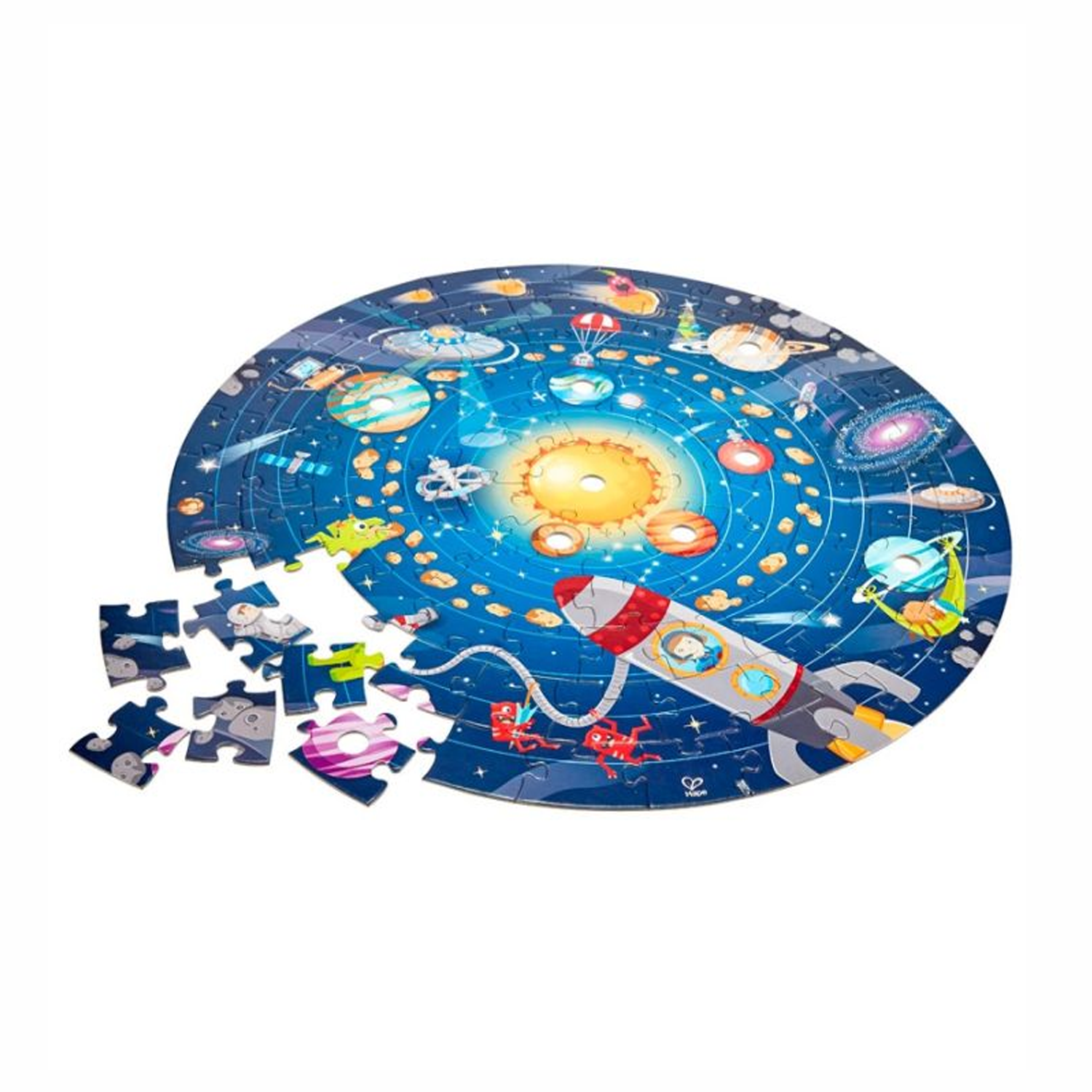Para poder montar el sistema solar, contiene los planetas hechos en madera maciza, un brillante sol LED y un póster con todos los nombres de los planetas.