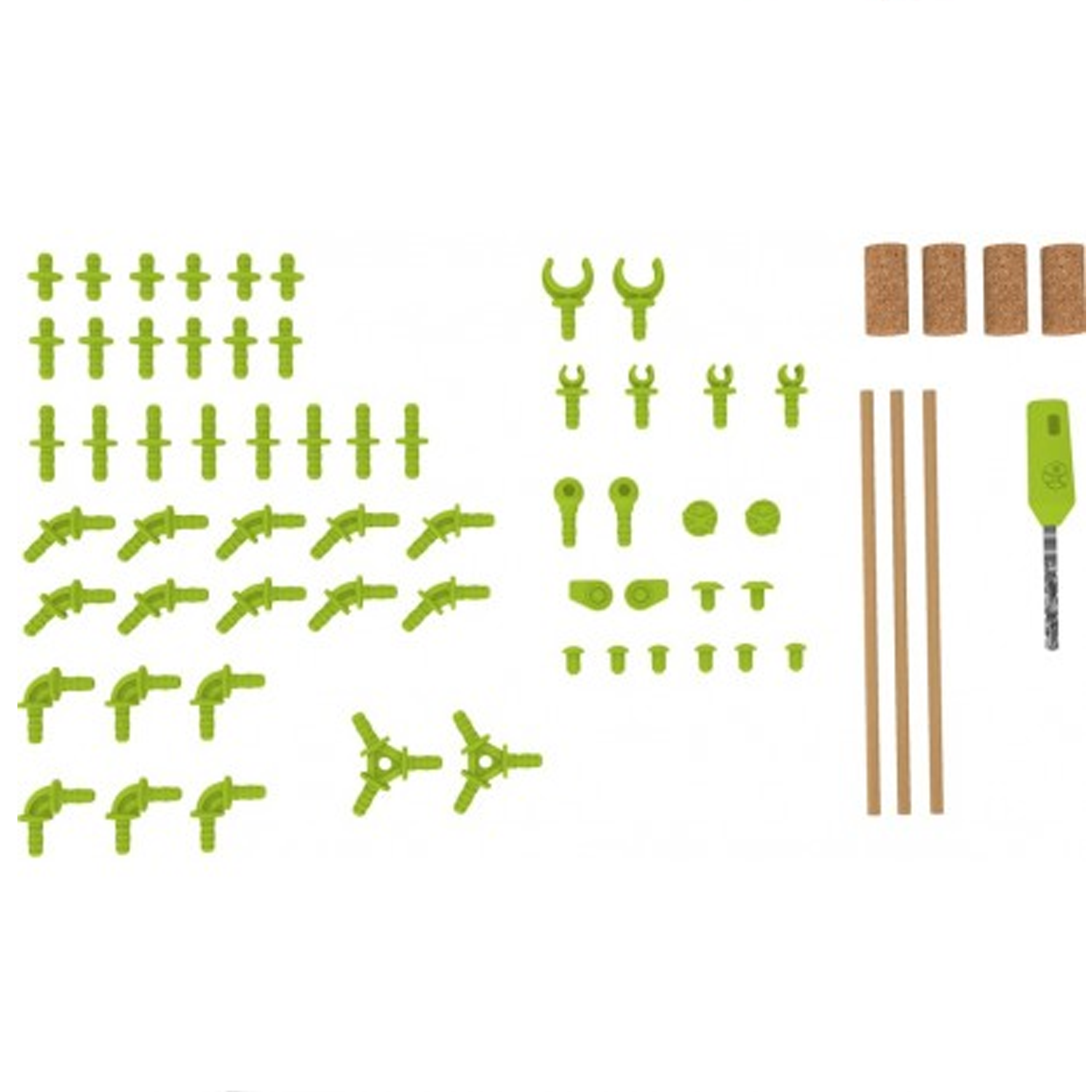 El principio es sencillo y genial: se reúne la madera en la naturaleza, se elabora en casa y con el taladro se le provee de agujeros, se insertan los conectores y se unen a otras piezas de madera. Y ya cobran vida las figuras. Las instrucciones contienen muchas sugerencias para otras construcciones. Las ramitas de madera no están incluidas.