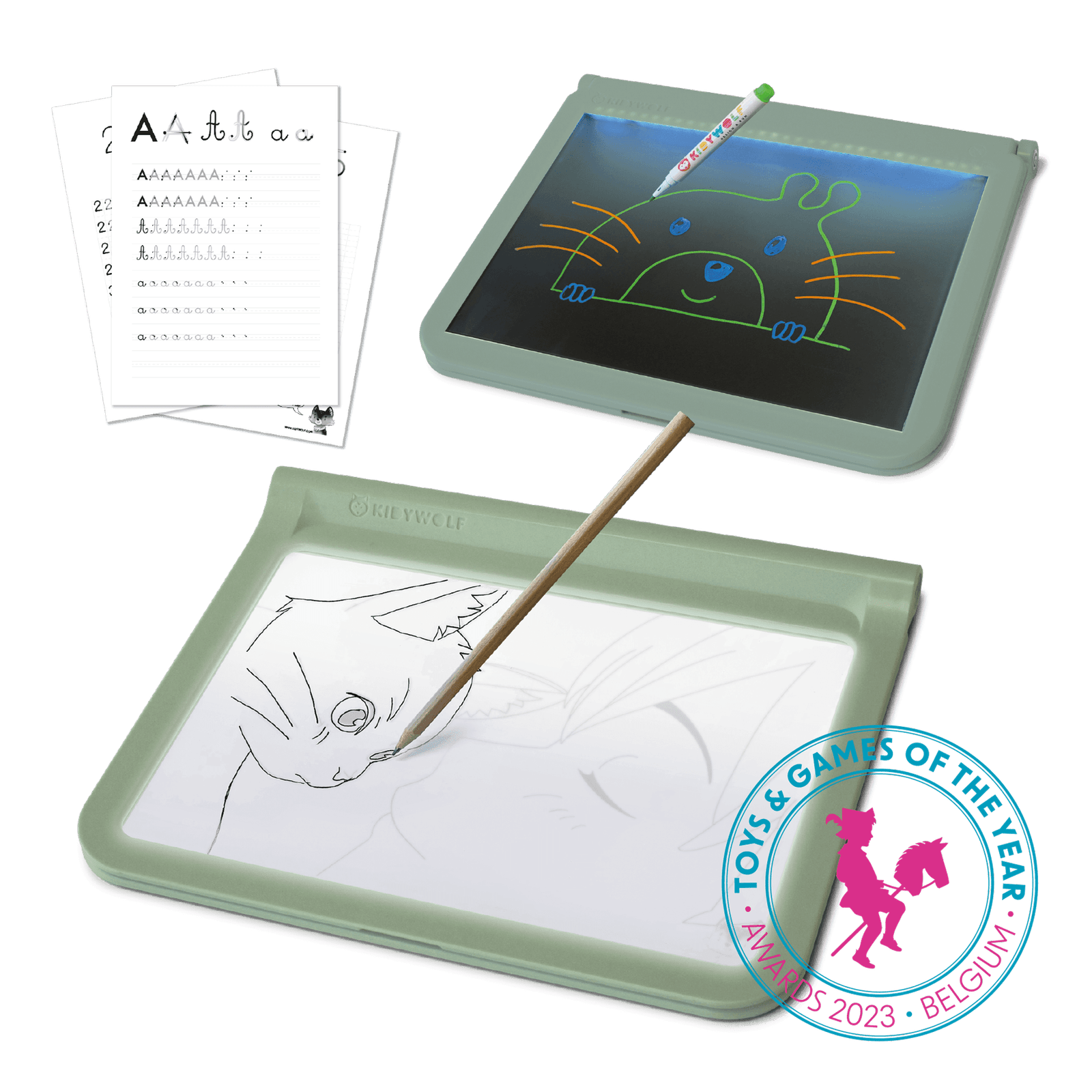 Tableta luminosa portátil con doble cara para dibujar, escribir y calcar Kidydraw Pro verde, de Kidywolf.