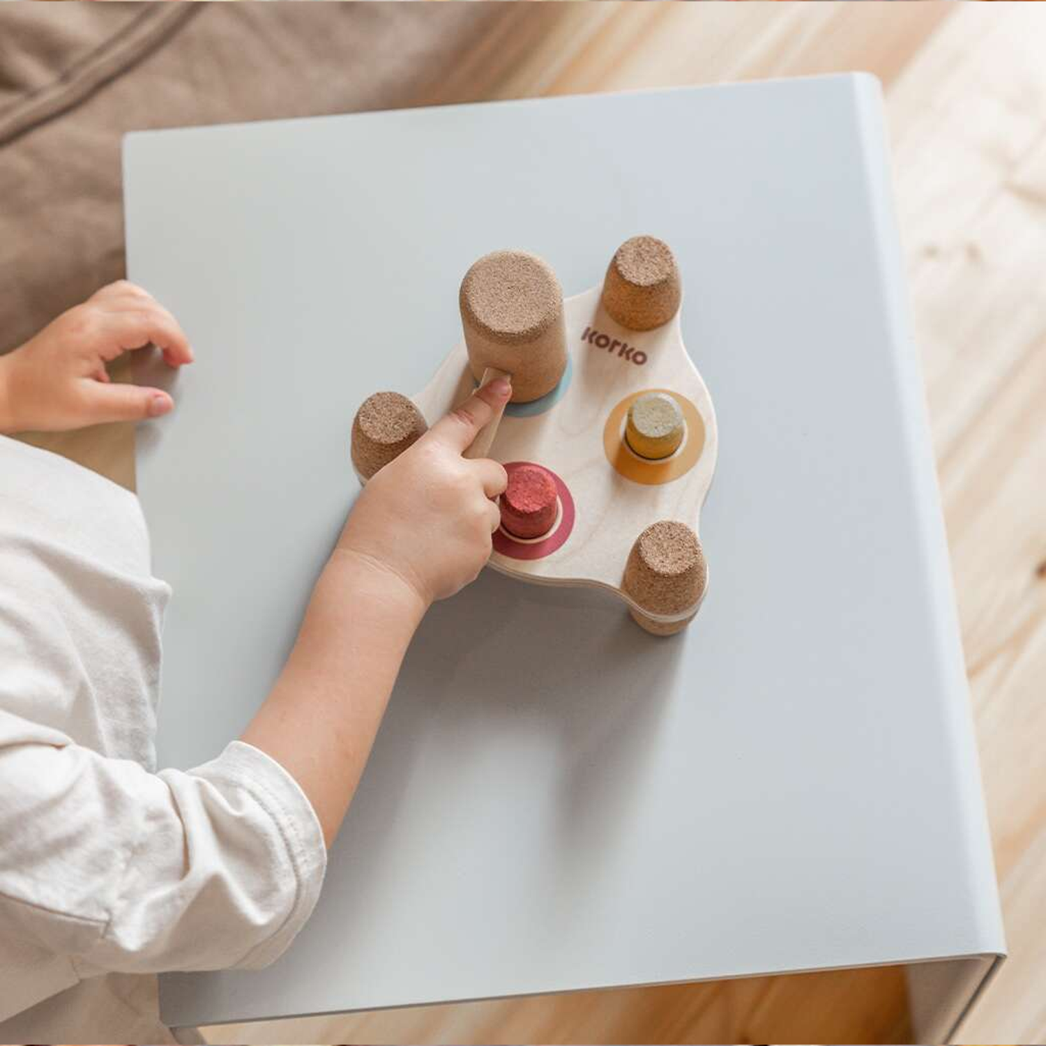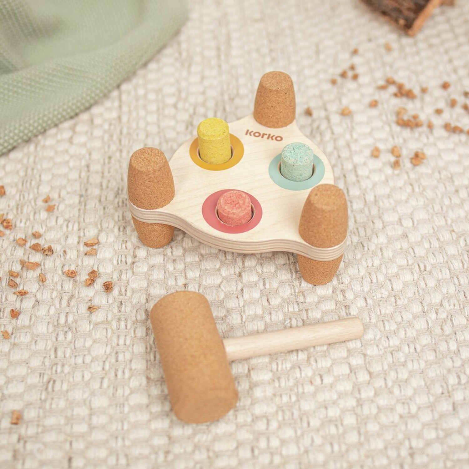 El picafuerte Tap Tap Rainbow: ¡un elemento esencial para jugar! El picafuerte de Korko presenta tapones de corcho de colores para que los niños martilleen, fomentando la creatividad y mejorando la coordinación mano-ojo.