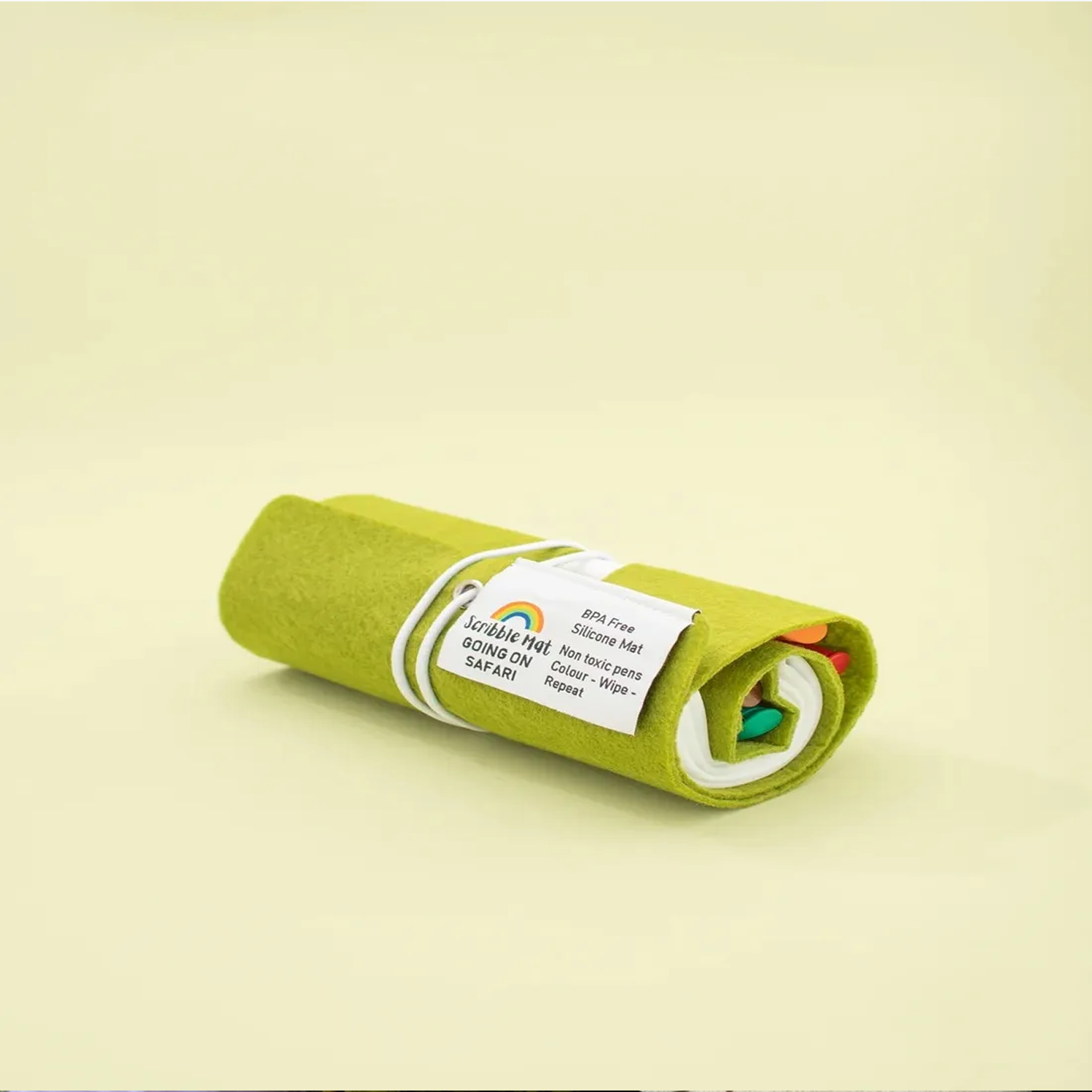 Incluye 6 rotuladores lavables que permiten mayor variedad de tonos. El tapete es de silicona resistente, fácil de enrollar y limpiar.