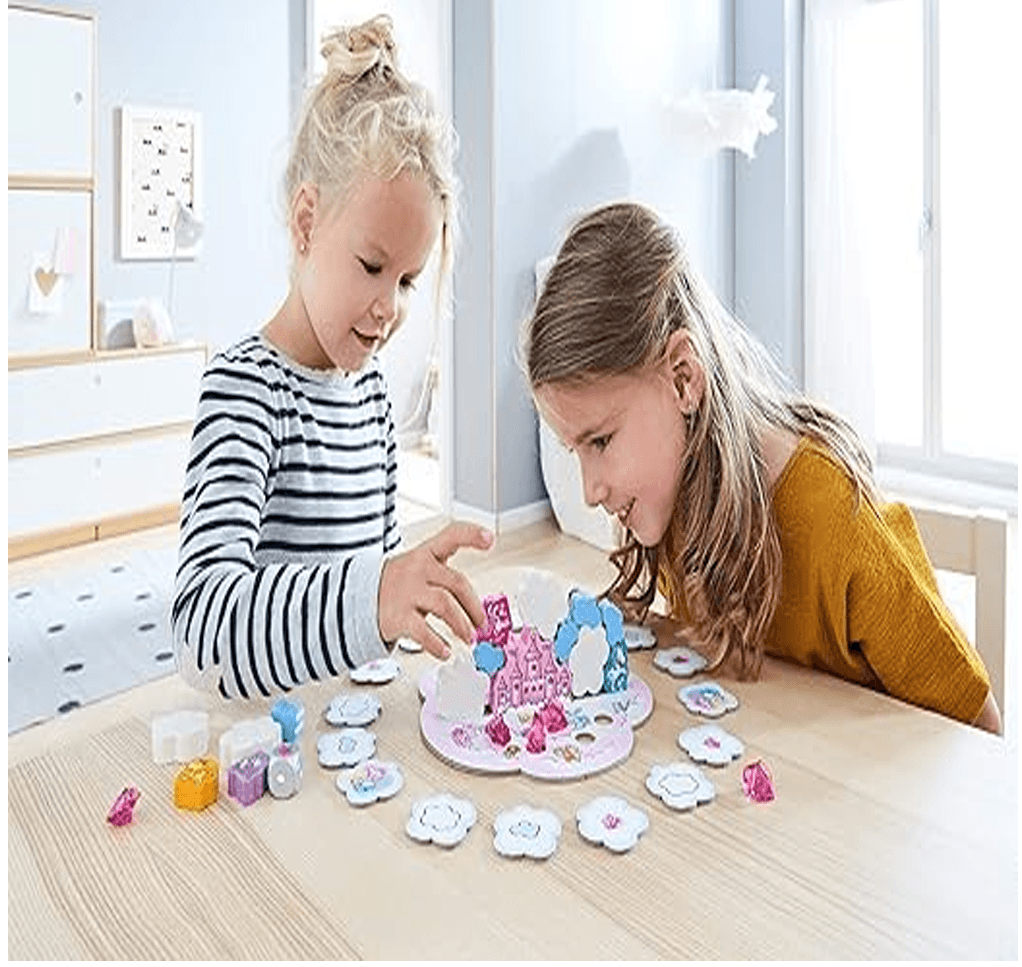 Juego cuyo objetivo es avanzar en dirección a la nube del sol y reunir el mayor número de cristales de nubes. Destello, Astro, Flor y Espiral son 4 unicornios que viven en el lejano País de las Nubes. Los 4 son muy amigos. Van galopando alegremente por las blandas nubecitas de algodón, se deslizan por el tobogán del arco iris o juegan con los cristales radiantes de las nubes. De pronto se levanta una tormenta. Los unicornios huyen a toda velocidad de las nubes oscuras, en dirección al sol.Durante el camino van a intentar reunir el mayor número posible de cristales de las nubes para ponerlos a salvo de la tormenta. La partida acaba cuando un jugador llega con su unicornio a la nube del sol o pasa de largo por ella.De premio recibirá los 4 cristales que contiene. Ahora, los jugadores contarán sus cristales de nubes. Si todavía no saben contar esas cantidades, entonces se da la vuelta al tablero de juego.Se ponen los unicornios encima de la ilustración correspondiente y colocan los cristales en hilera sobre las nubecitas que están a continuación. Ganará el jugador que tenga el mayor número de cristales.
