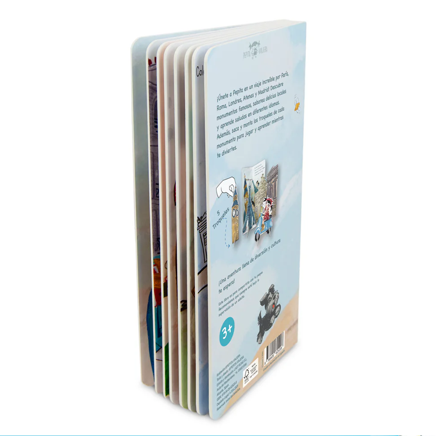 •  Descubre 5 países y juega con las piezas troqueladas extraíbles.