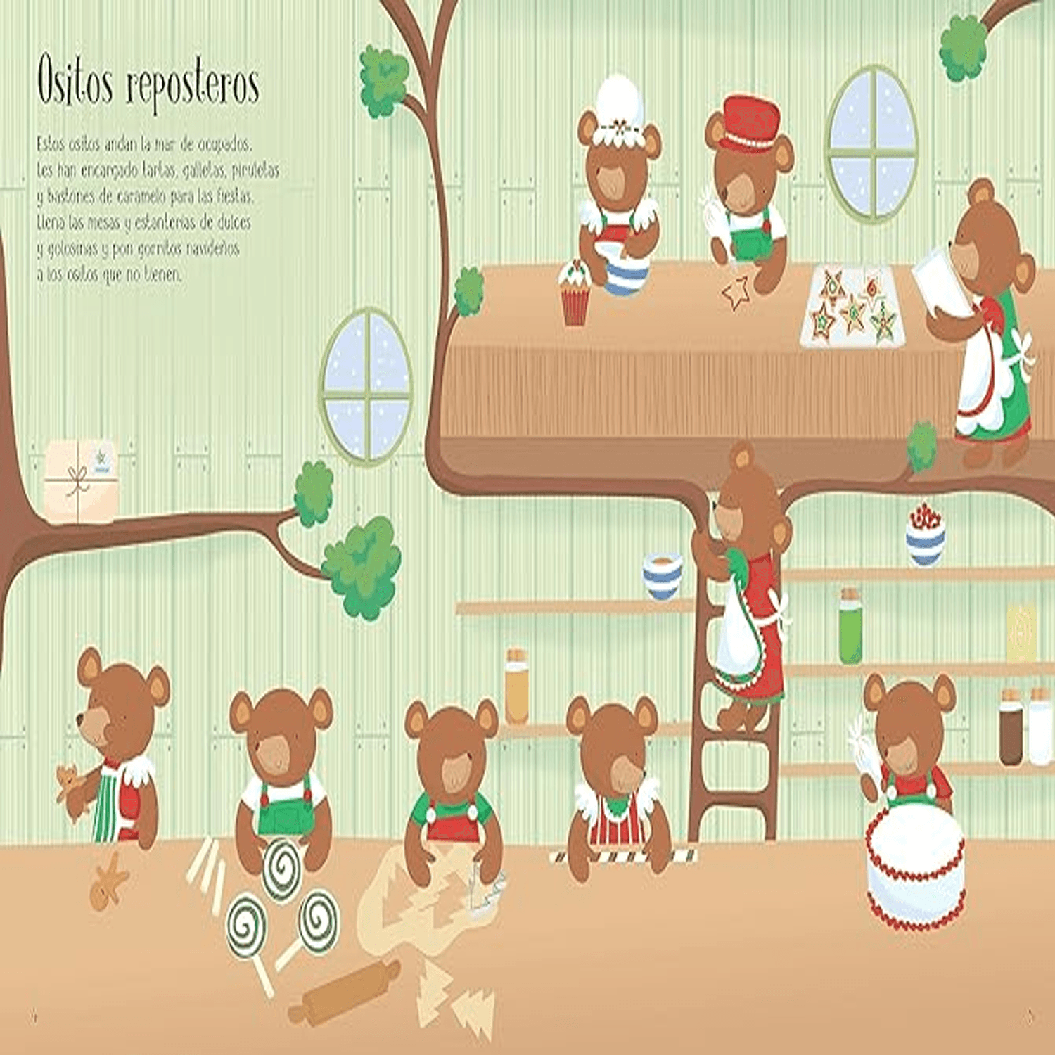 Los chiquitines podrán unirse a los preparativos de estos atareados ositos que esperan con ansias la Navidad, hornear delicias navideñas, acudir a una fiesta de pingüinos, ayudar a los ratoncitos a construir grandes muñecos de nieve o envolver regalos con los elfos de Santa.